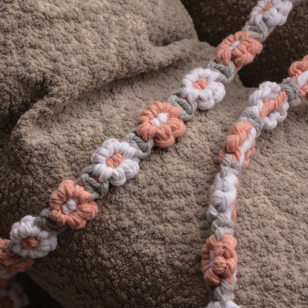 Wear it over your shoulder or replace your purse strap with it to give your look a whole new touch! 🌼 Our long crochet flower strap adds instant cuteness to any outfit and can easily be swapped for another color to match your vibe. 💕